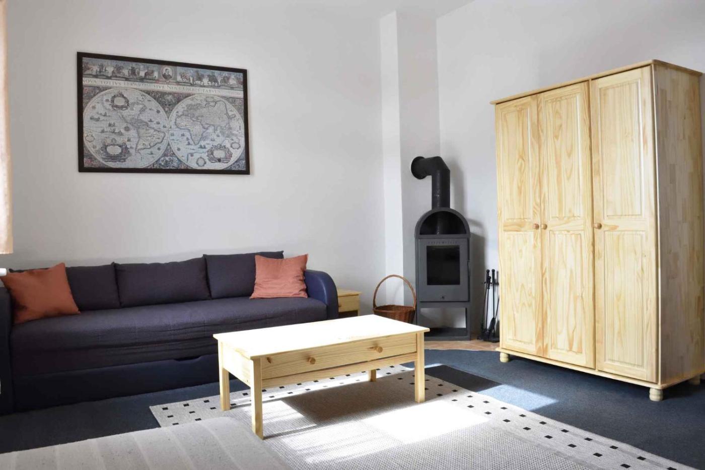 Apartment. This apartment offers a fireplace. This apartment comprises 1 living room, 1 separate bedroom and 1 bathroom with a shower. Guests will find a stovetop, a refrigerator, a microwave and an electric kettle in the kitchenette. The apartment also provides guests with a barbecue. Featuring outdoor furniture, this apartment also provides a dining area, heating and a TV. The unit offers 4 beds. ;