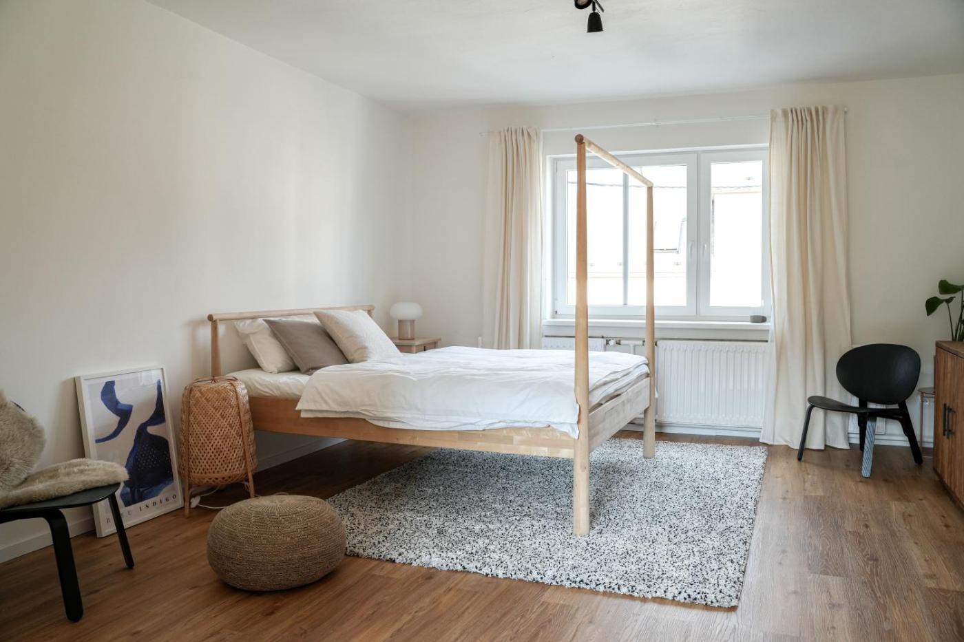 Two-Bedroom Apartment. Guests will have a special experience as this apartment provides a fireplace. Featuring a private entrance, this apartment also is comprised of 2 bedrooms, a seating area and 1 bathroom with a bath and a hairdryer. In the fully equipped kitchen, guests will find a stovetop, a refrigerator, a dishwasher and kitchenware. The apartment offers a washing machine, a tea and coffee maker, a wardrobe as well as a terrace with garden views. The unit offers 2 beds.