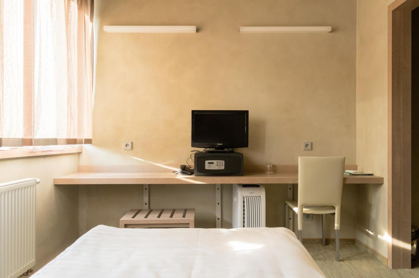 Double or Twin Room. - quiet rooms with twin beds, which can be put together - modern brown furnishing - street view - entrance hall with wardrobe - work desk with chair ;