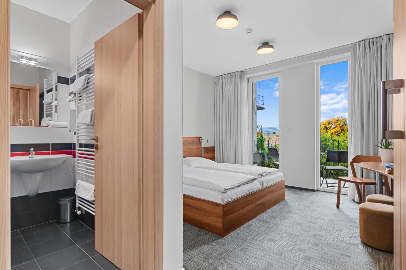 Double Room with Balcony. This double room features a balcony with Zvičinský Mountain views, a TV with satellite channels, a fridge and a private bathroom. ;
