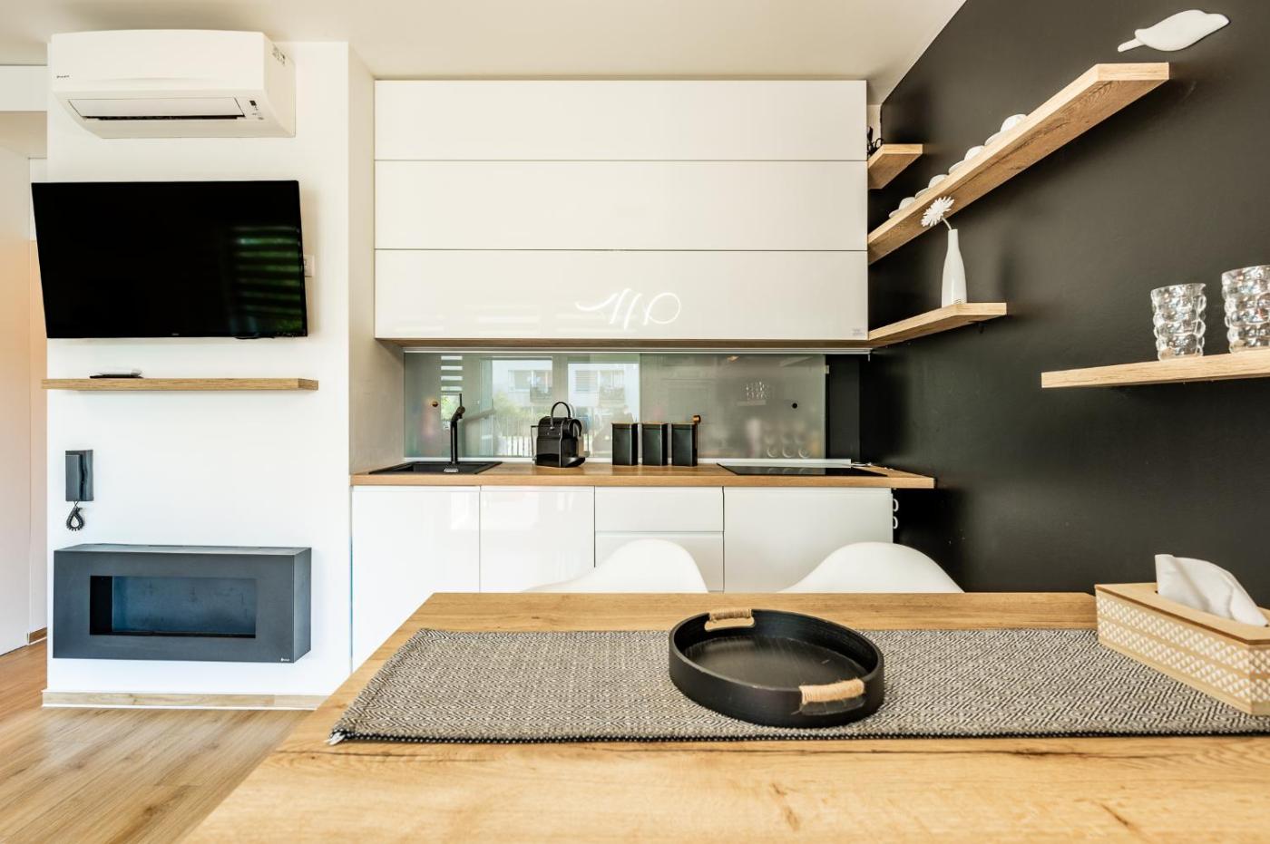 One-Bedroom Apartment. The air-conditioned apartment has 1 bedroom, 1 bathroom, a kitchenette and a seating area. The apartments kitchenette is available for cooking and storing food. Boasting a terrace with garden views, this apartment also features a washing machine and a flat-screen TV. The unit has 2 beds.