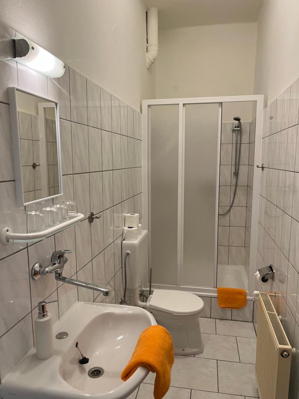 Double Room. The double room features a wardrobe, a carpeted floor, as well as a private bathroom boasting a shower. The double room provides heating and ancourtyard view. The unit has 3 beds.