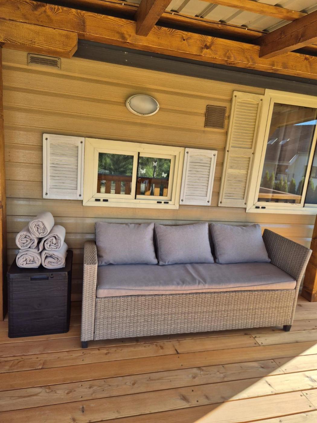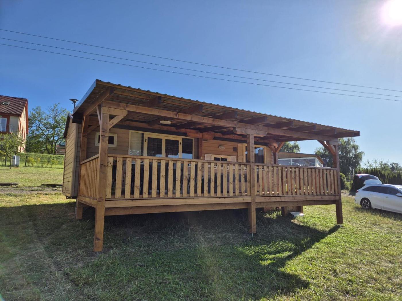 Mobilní dům Krajánek in Výrovice offers direct beachfront access and stunning lake views. Guests can relax on the terrace or enjoy the outdoor seating area.